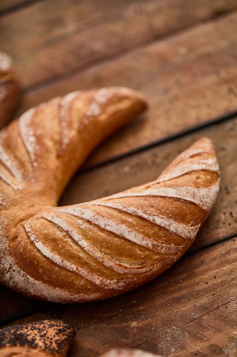 Elaborado con harina de trigo. Fermentado muy lentamente. De corteza fina y crujiente. Es nuestro pan emblemático.