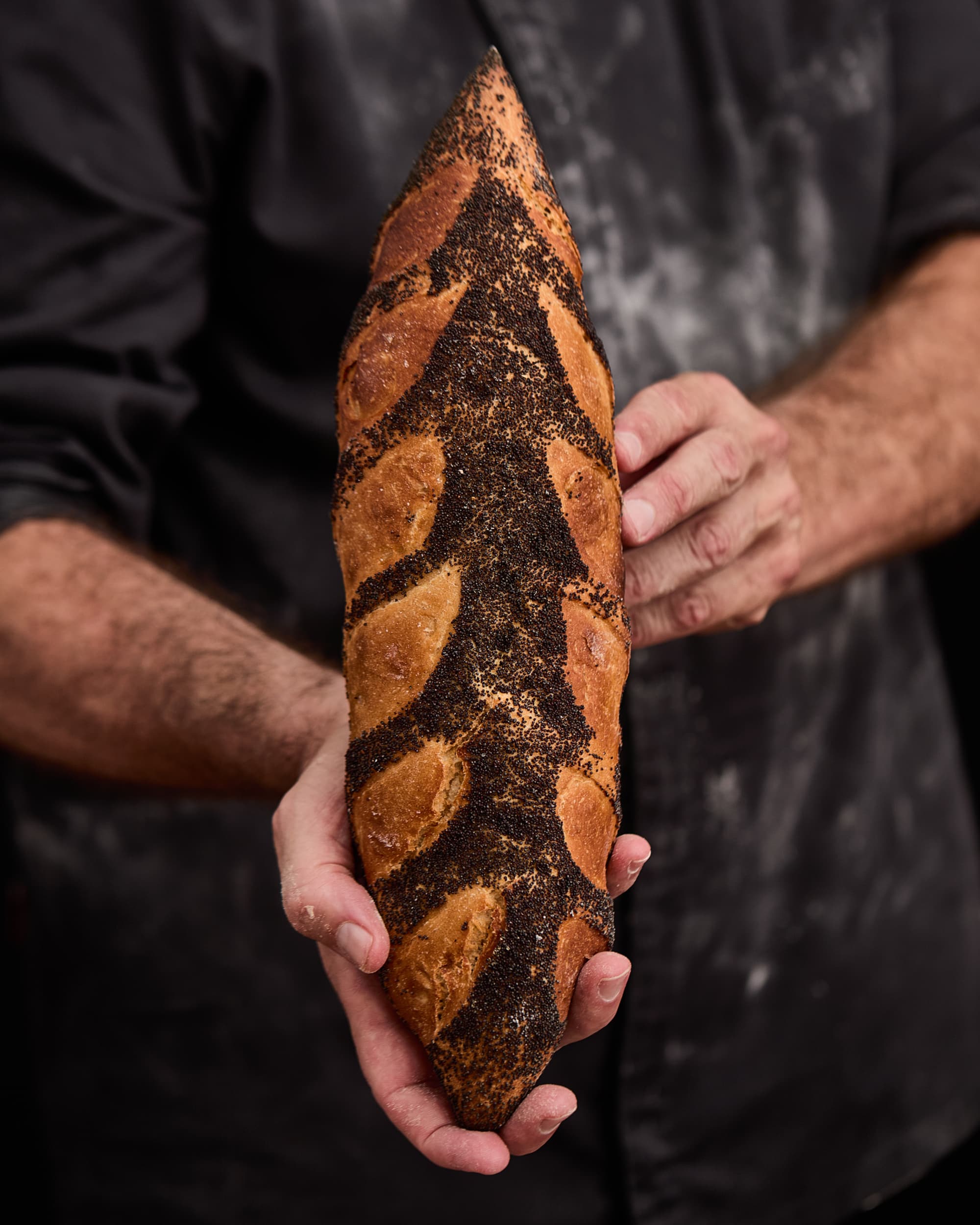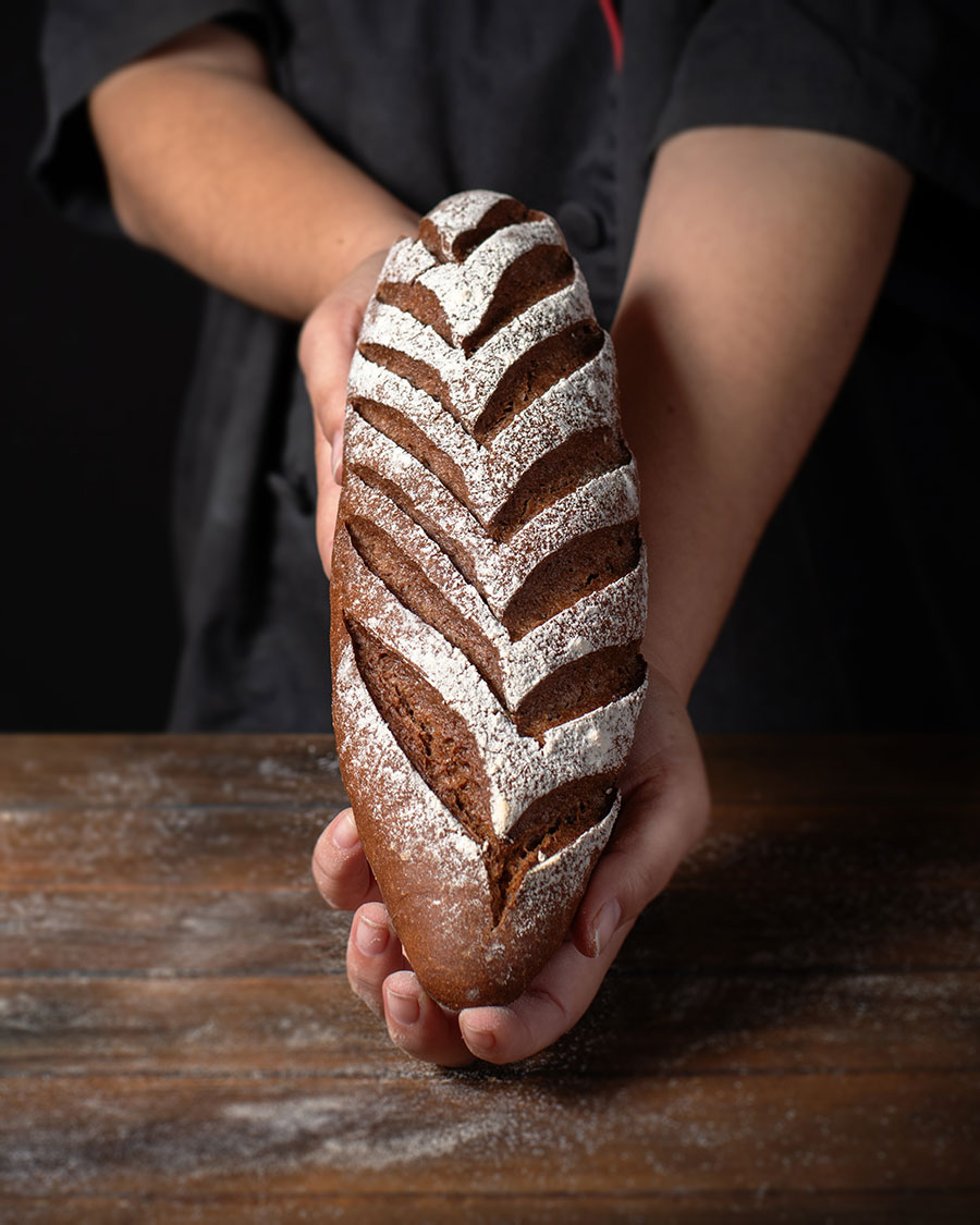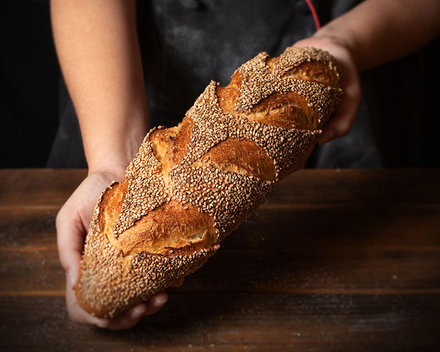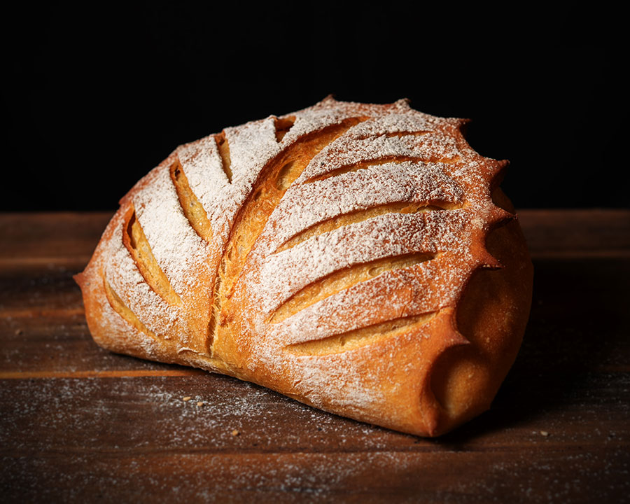 Pan de alta hidratación y largos periodos de fermentación que le confieren una textura y aromas inconfundibles.
