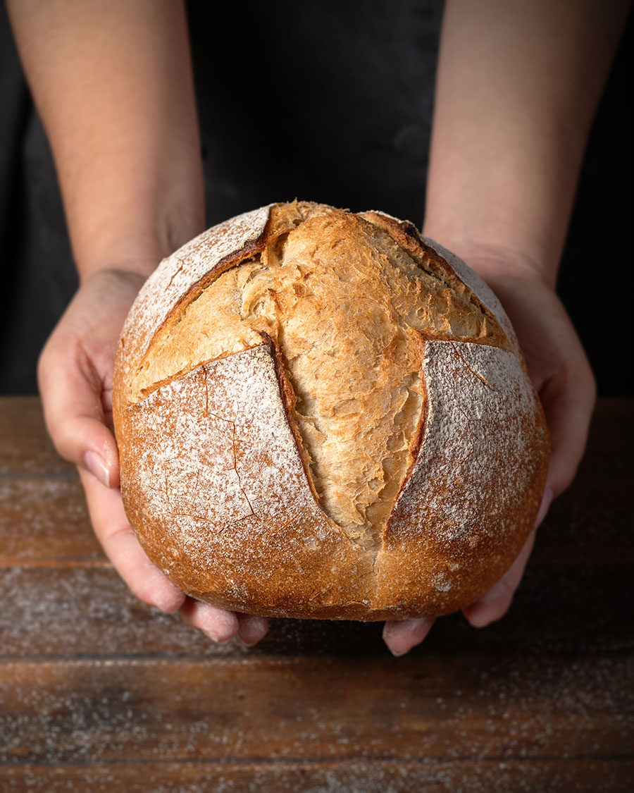 Elaborado con masa madre. De miga esponjosa y corteza tostada.